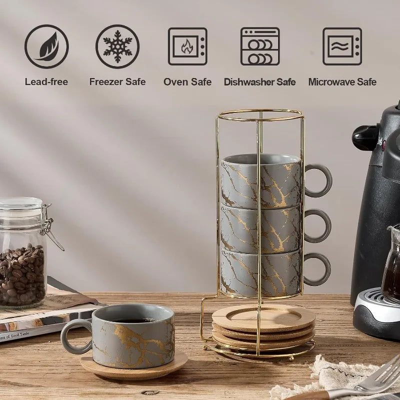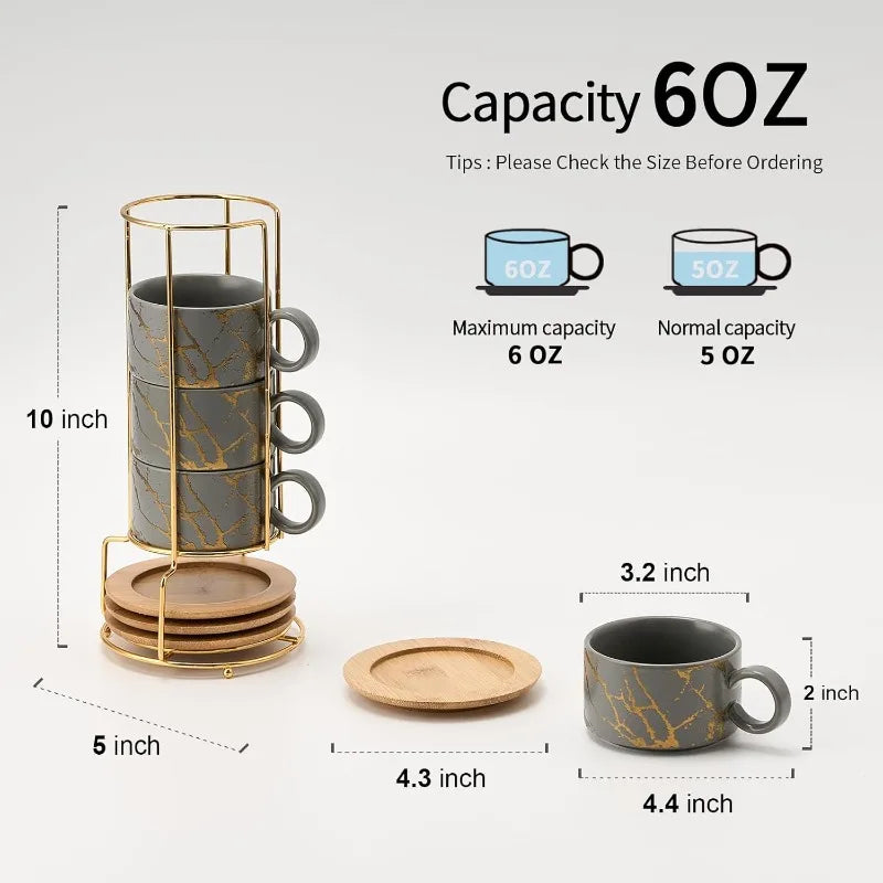 【Have A Coffee House Experience】A Simple yet classy design that perfectly fits your espresso maker. They have a cafe look that actually makes you feel like you're at a coffee shop abroad with our stackable espresso cups.