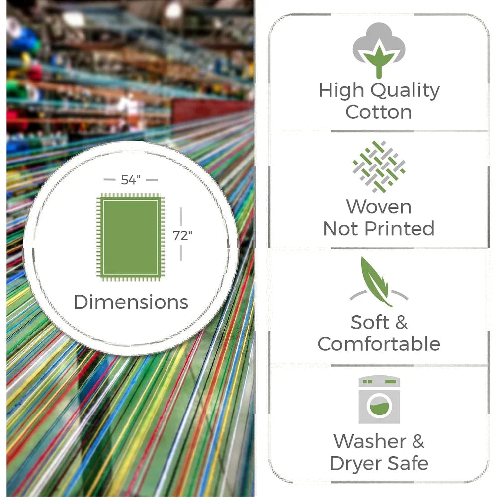 - Cotton: Woven from a mixture of virgin and recycled environmentally friendly cotton. The blanket will get softer with every wash.